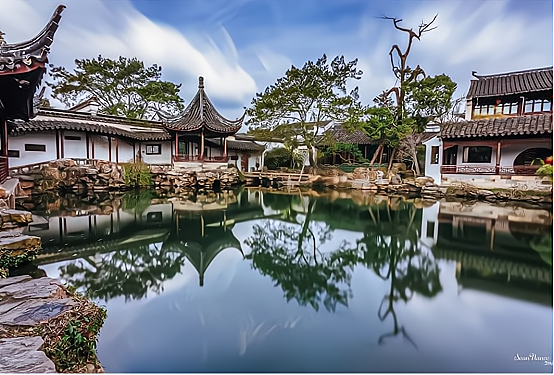 苏州园林是各地园林的标本,无论大家站在哪个点上,都是一副完美的图画。