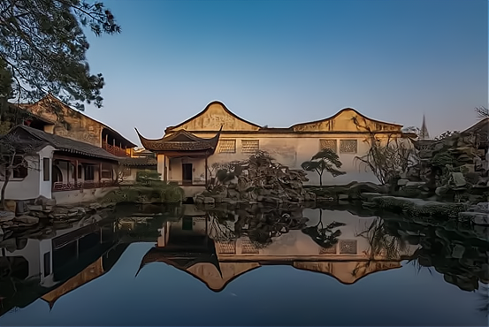 讲究假山与池塘的配合,假山的堆砌错落有致有自然灵动之美,让人忘却其为假山。