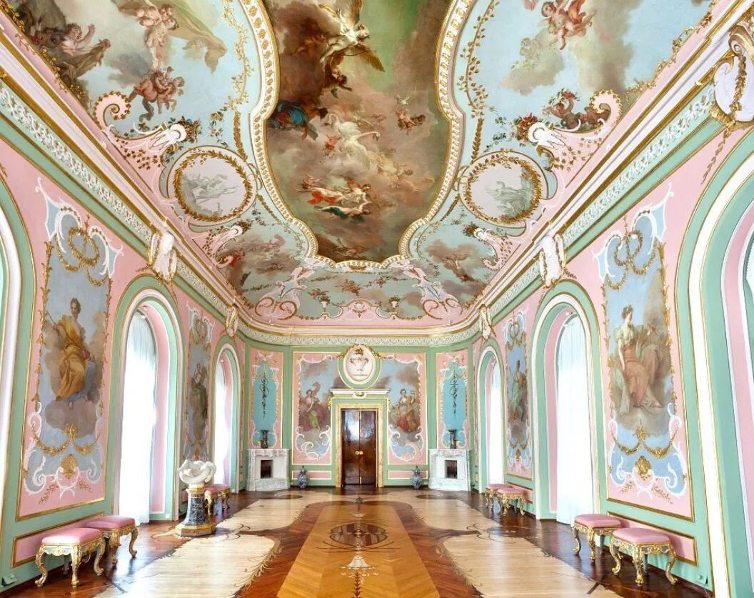 洛可可风格更多的是体现在内部的装饰上,采用轻快明亮的色彩以及纤巧的装饰,看上去细腻温柔。在色调的张扬与柔和之间,展现贵族宫廷的优雅奢华。