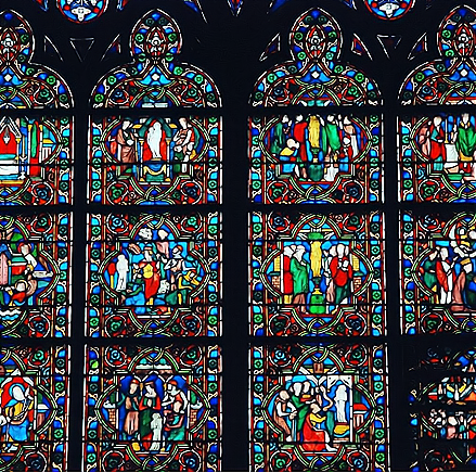 巴黎圣母剧院那绘满了圣经故事的玻璃花窗,从视觉效果上所呈现的炫影,从上方倾泻而来的神圣感,也让教徒产生与上帝只有一线之隔的错觉。