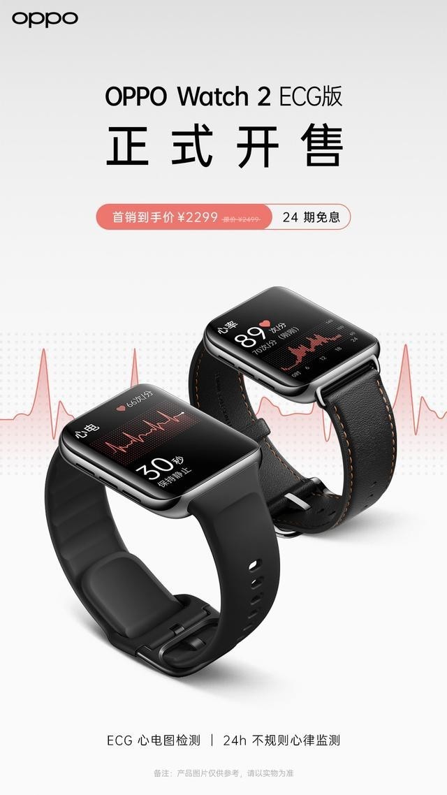 今日消息,OPPO Watch 2 ECG版智能手表今日正式开售,首发价为2299元。我们现在来看下这款手表,这款手表采用1.92英寸3D AMOLED双曲面无界屏,搭载高通骁龙Wear 4100与Apollo4s双芯片,续航时间可达4天至16天。在运动与健康方面,其还与国家体育总局体科所合作,并支持独家健康精灵功能,在与卡通形象的互动中进而增强健康管理。50多款应用在这款手表中也是支持的,使用起来也是相当便捷。
