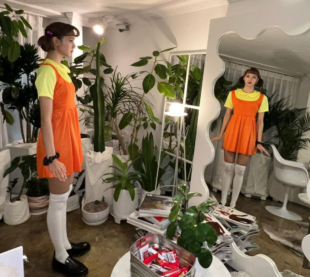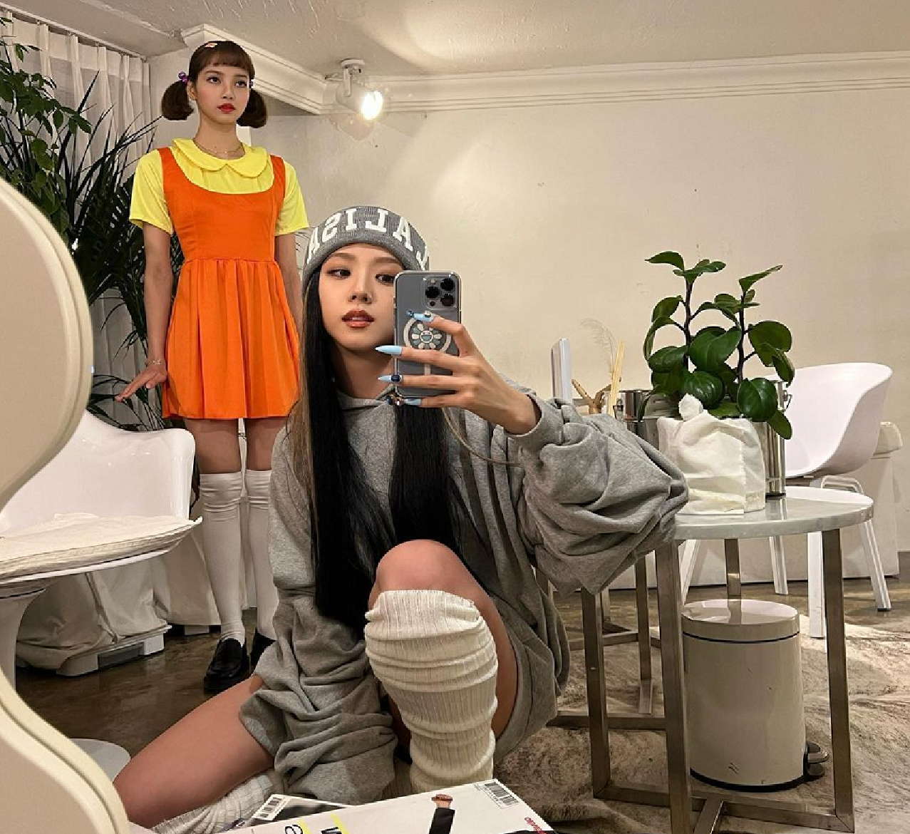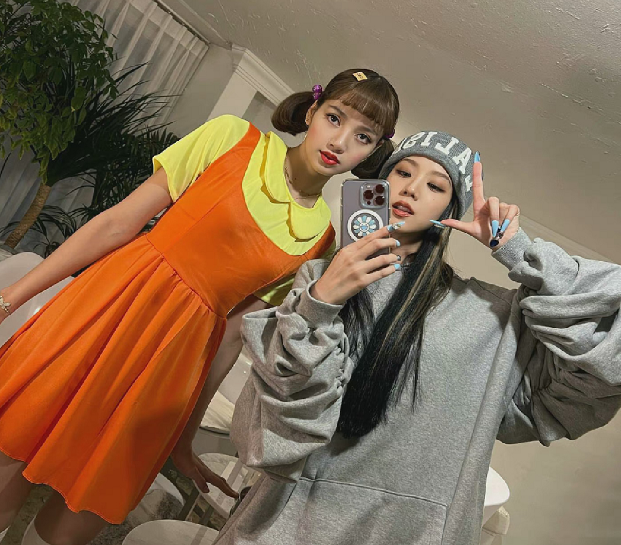 10月31日,泰国知名女歌手Lisa在万圣节这天cos了热播网剧《鱿鱼游戏》里头的经典形象“木头人娃娃”,并与韩国超人气女歌手金智秀梦幻联动,一起合拍了多张可爱搞笑的照片,吸引来了众多粉丝围观热议。