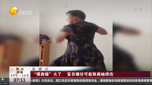 前段时间,在国内某短视频平台上,一位阿姨自创的摆肩操火了。在视频中,伴随着动感的音乐,一位阿姨以弓步站姿,用力地甩动着肩膀。因其魔性十足的动作,瞬间在网上蹿红,同时也吸引了很多网友的模仿。