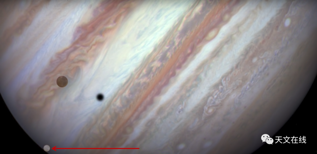 图:木星和它的卫星(箭头所指为木卫二)