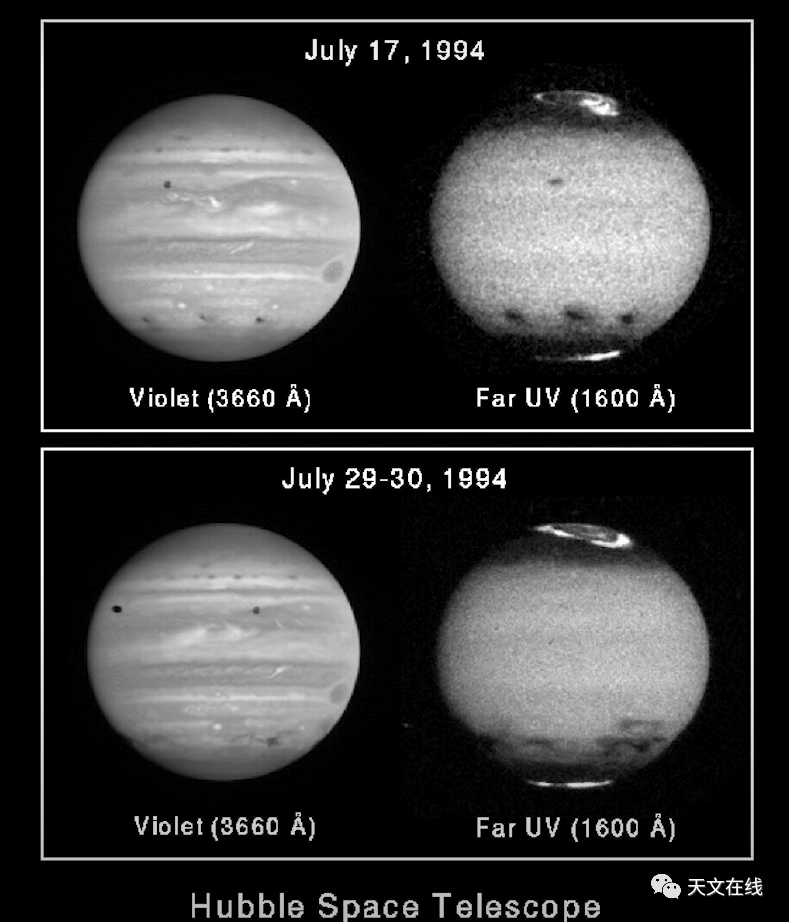 图:木星极光在紫外波段和远紫外波段的图像对比