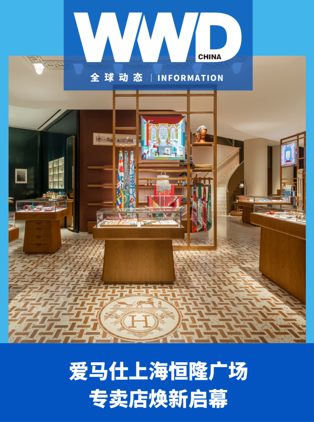 10 月 29 日,爱马仕上海恒隆广场专卖店迎来焕新启幕。全新专卖店跨越两层,拥有逾 656 平方米的销售面积,爱马仕十六大产品部类尽数陈列其中。店铺设计充分融汇上海丰厚文化 底蕴,彰显爱马仕与这座城市之间的深厚联结。全新专卖店采用坚实有力的外立面设计,于醒目的石墙上部嵌入绵延长窗,引入户外自然光线使 内部空间更显明亮开阔。全新专卖店由巴黎建筑事务所 RDAI 精心打造,整体流畅的弧形布局完美契合店内空间。嵌于 天花板与弧形墙壁中的线条,将指引宾客开启爱马仕探索之旅。在店铺内部,浓郁丰富的深蓝 绿色、勃艮第红色与焦糖色调融汇于一体,层次多元的雾感、漆面与丝绒饰面交织于空间中, 将不同产品部类紧密联结。呈现 3D 效果的定制地毯印饰有相互交叠的几何图案,鲜明饱和的 色彩将不同区域分隔开并赋予其独特个性。(Nion)