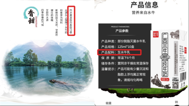 在产品配料方面,“壮牛”水牛奶配料表只显示“生水牛乳”一项,但有消费者反馈,该牛奶有冰淇淋味道,有点像“旺仔牛奶”,同时,其天猫旗舰店也宣传称其有冰淇淋味道。