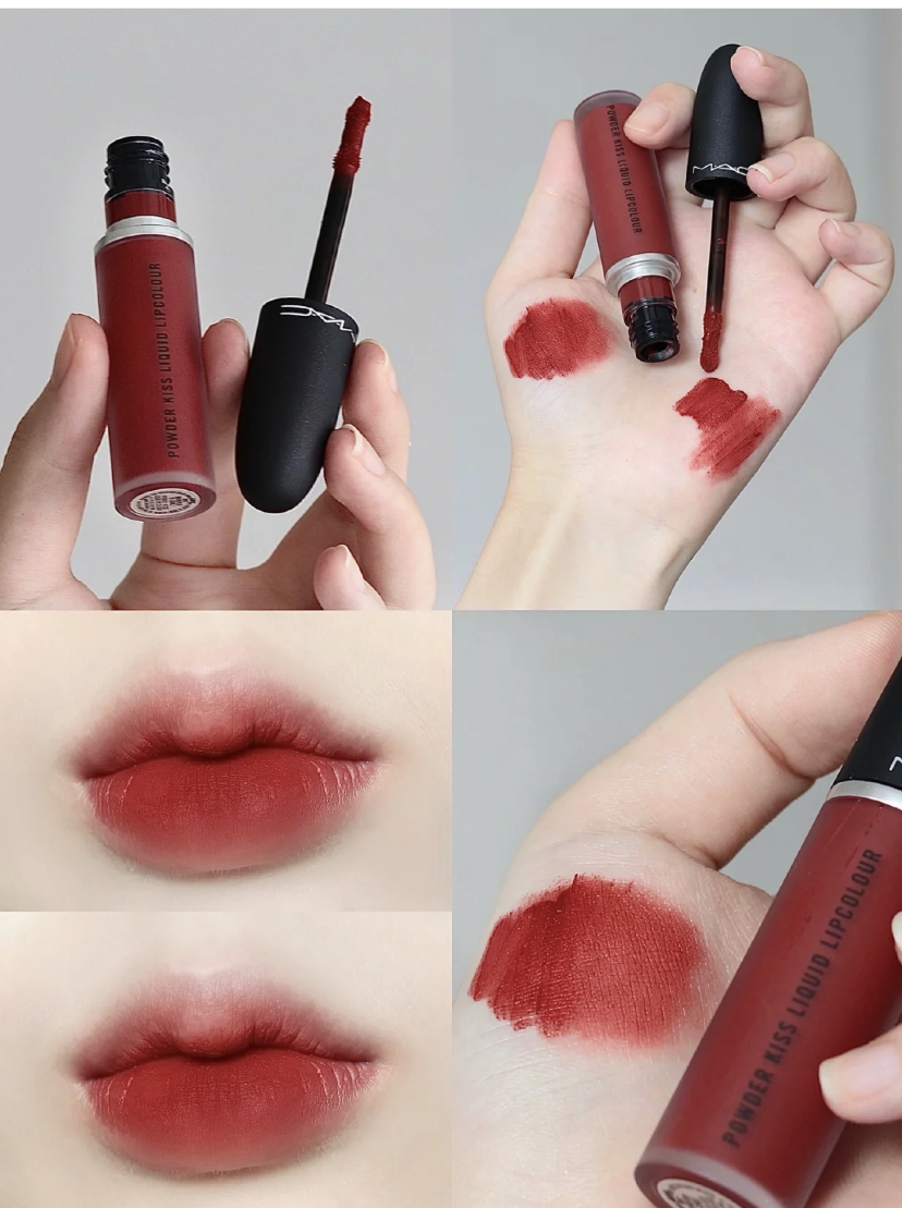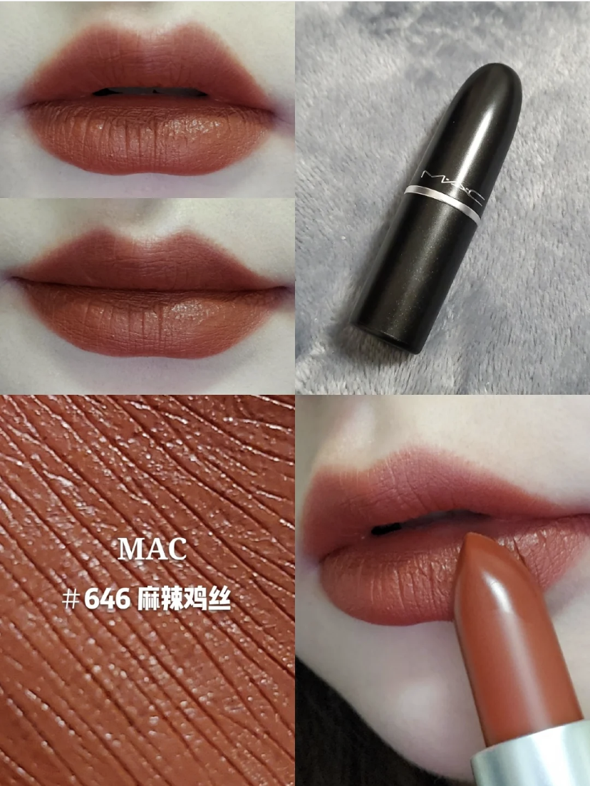 棕调酒红色,黄皮同样适合,而且巨显白,滋润型,不拔干,有光泽度,给人一种“生人勿近”的感觉。适合轻欧美,日常妆薄涂嫩嫩的红玫瑰色,厚涂有种暗暗的红玫瑰的感觉。上嘴滋润,是好闻的巧克力味道,对黄皮友好,不显唇纹。