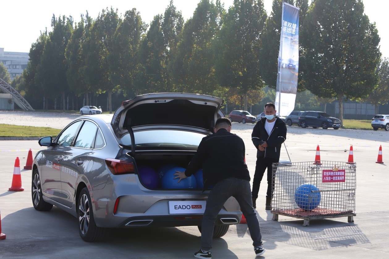进入挑战场地,并且驶入车库中,以遮罩覆盖车身视野,制造视野盲区,现场体验嘉宾进入驾驶位后,在540°全景影像的辅助下将车辆挪出车位,并驶入下一环节场地抱气球装车,体现车内大空间,感应尾门科技感。