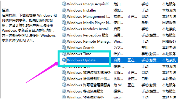 2.在打开的窗口中找到“windows Update”启用选项,并双击打开,如图下所示。