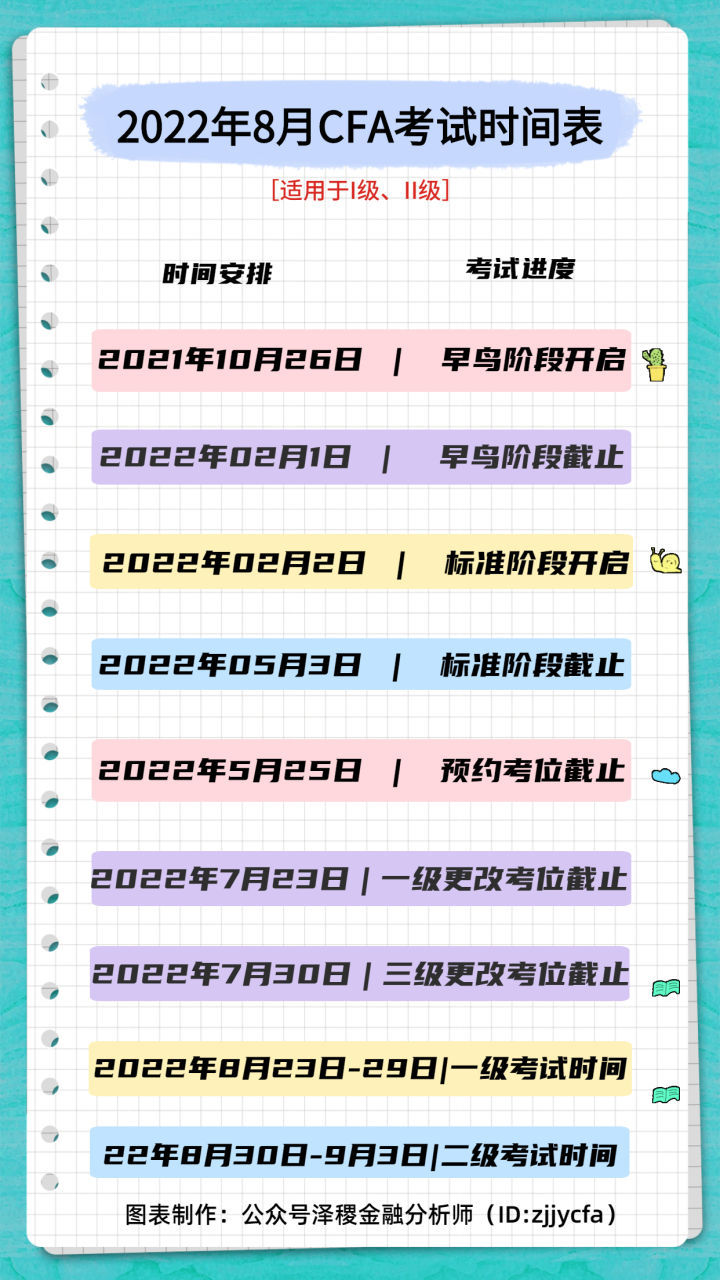 ⭐CFA二级考试时间:2022年8月30日-2022年9月3日