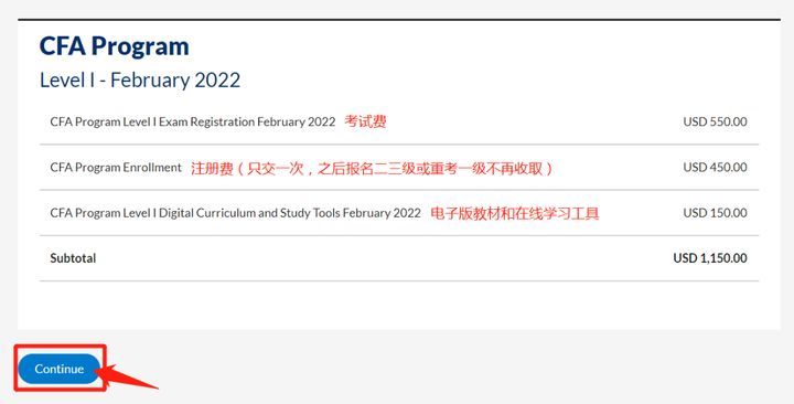 CFA考试费用和注册费:CFA注册费用取决于您决定何时注册考试,请注意,首次注册一级考试需要支付450美元的一次性注册费。