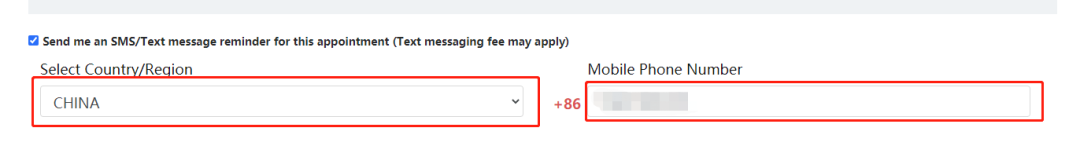 Step 8.可填写手机号码,选择国家或地区,考场预约信息将会以短信方式发送给考生;