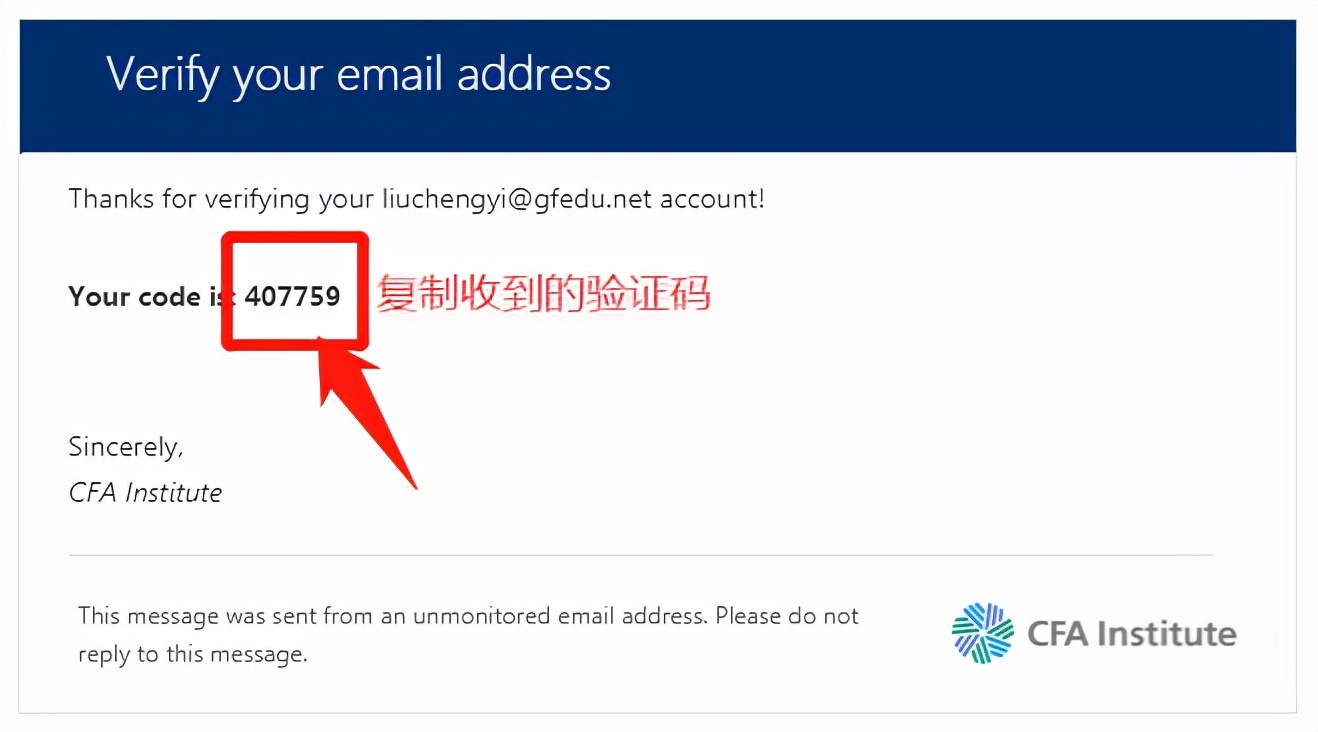 Step5.查看邮箱信息,复制邮件里面的验证码,并填写验证码