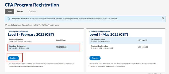 注册这件事,是所有第一次考一级的新考生必须要做的。注册完毕后,报名CFA考试,每次参加考试的考生,都需要报名并支付报名费。小泽提醒考生们,尽量错峰报名。
