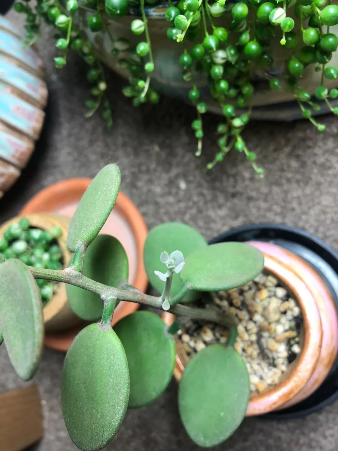 珍珠吊兰是一种很好养的吊盆多肉,适合悬挂在窗台上养护,放在桌子边上也是很好看的,可以尝试用不同的容器栽种,它的竹子就像是不断倾泻而下的珍珠。