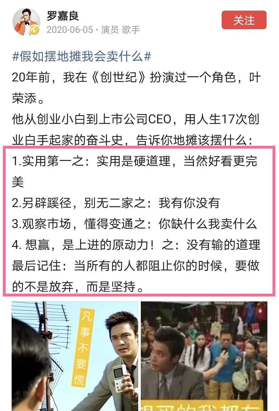 罗嘉良自己对叶荣添这个角色也感情很深,代入感依然很强,20年后,他还再次“化身”叶荣添,在网上教大家摆摊卖什么。