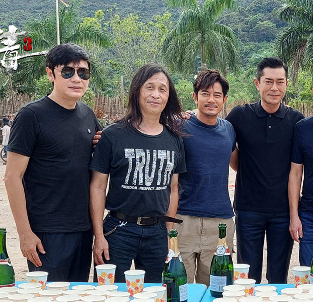 不过,在最近杀青的港片《扫毒3》里,除了主演古天乐、郭富城、刘青云,居然又看到了罗嘉良(下图左一)的身影!