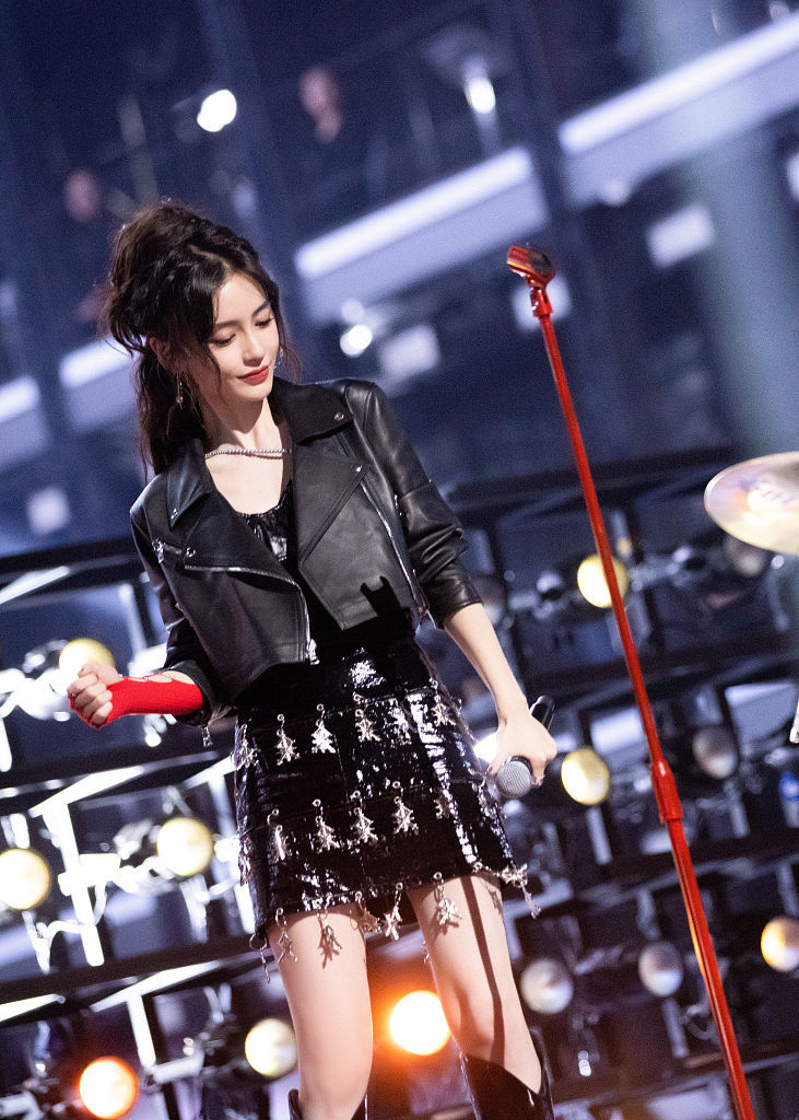 近日,Angelababy亮相京东11.11沸腾之夜,并拍摄一组造型写真,。一袭黑色皮衣搭配同色金属吊穗短裙和长靴,化身甜酷辣妹,与黑豹乐队同台表演,气场全开,释放专属她的朋克魅力。