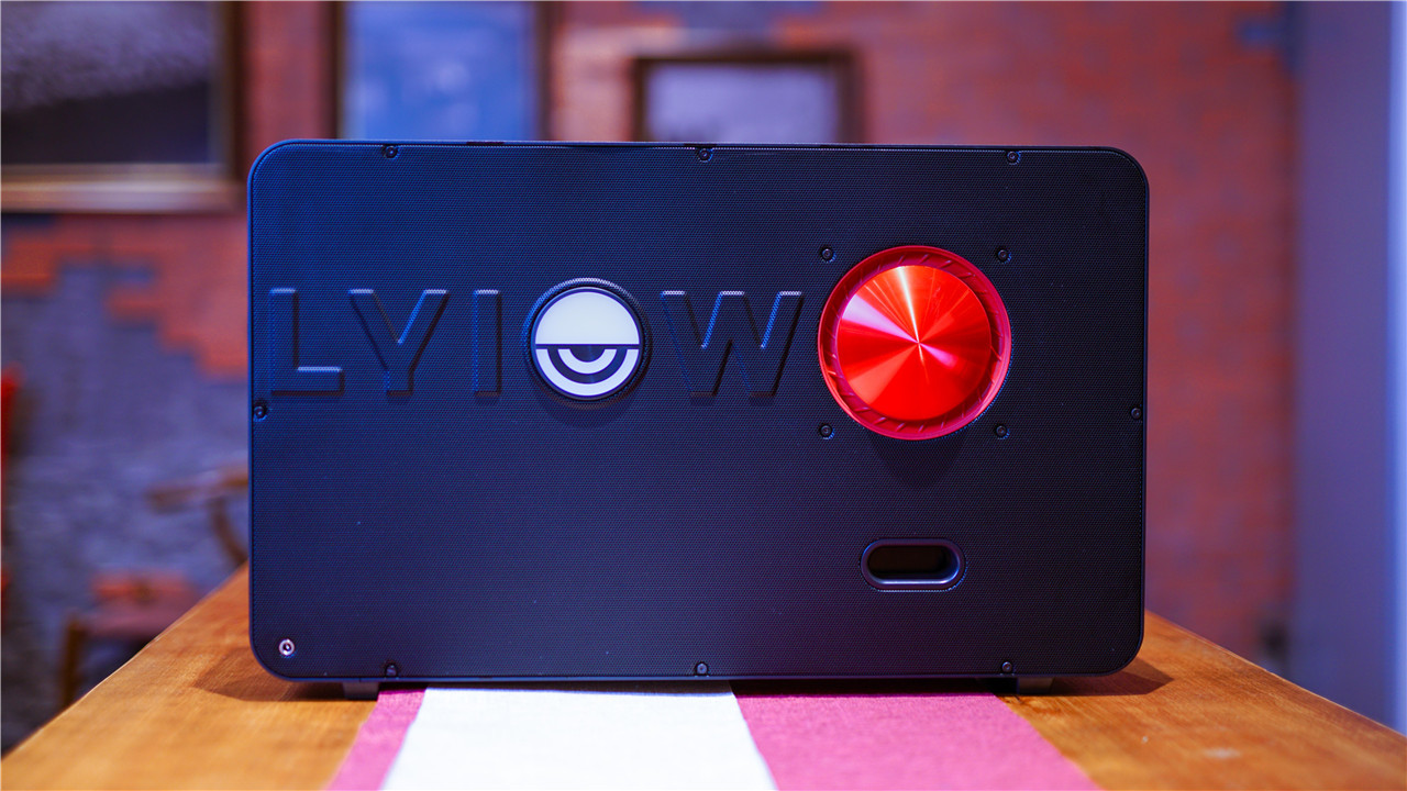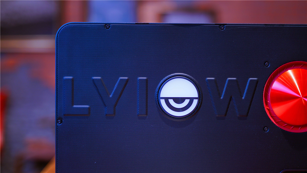 Lyiew 悬浮歌词蓝牙音箱的背面设计要生动很多,品牌LOGO用娱乐化拟物外观体现出来。背部空间塞入真实5寸倒相管的贲雷低音系统,能够提升输出音乐的弹性,更好的表现出瞬息动态的低音品质。