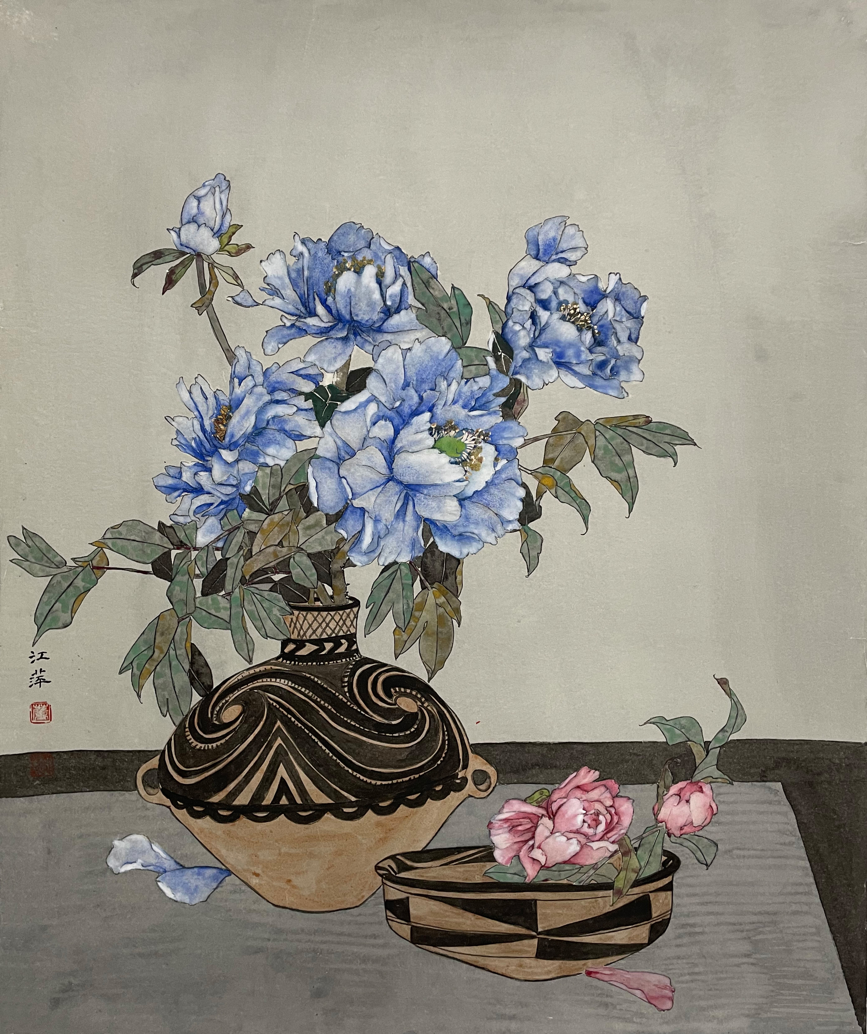 董江萍,女,祖籍河南焦作孟州市,现居北京。中国美术家协会会员、中国女画家协会会员、河南省美术家协会会员、孟州市书画院理事。近年来作品在全国美术大展中多次入选并获奖。