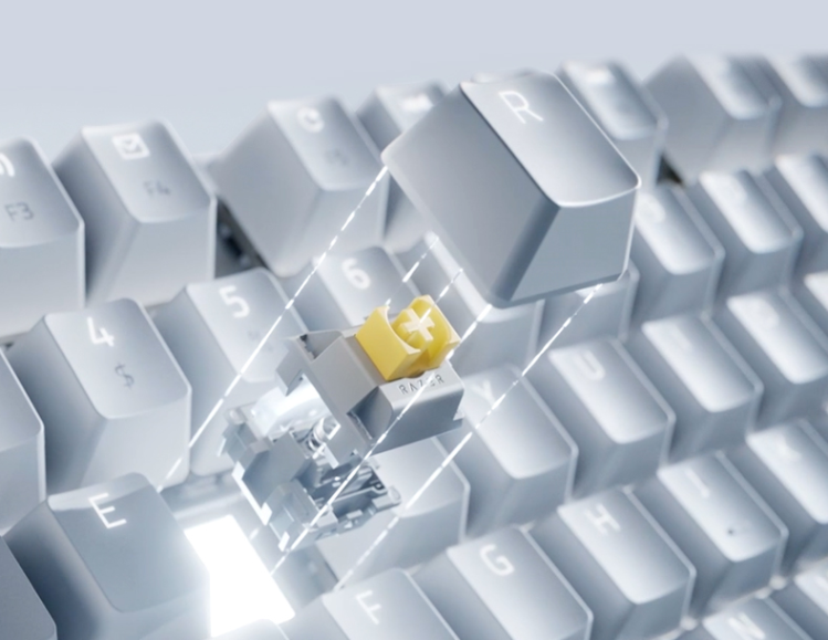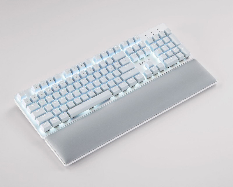 雷蛇 Pro Type Ultra 三模机械键盘为灰白配色并为白色灯效设计,键帽采用 ABS 塑料,键盘采用 104 键位布局,且设计了单独的小键盘区域方便用户办公时输入数字,键盘标配人造皮革腕托,使用户长时间使用键盘也不易疲劳。雷蛇 Pro Type Ultra 采用 Razer 自家的消音黄轴且支持 10 键无冲,雷蛇称轴体使用寿命为 8000 万次。