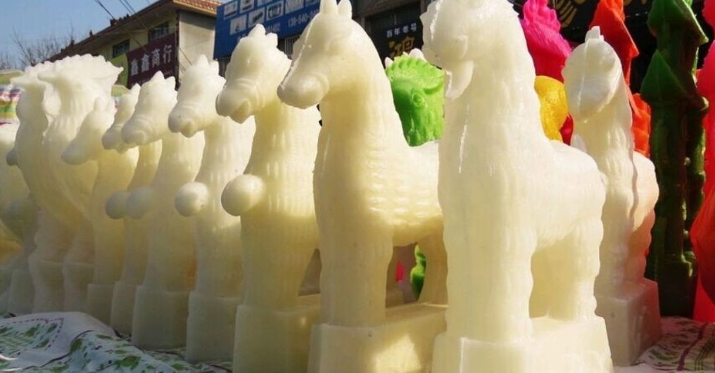 鄄(juan)城糖果饯的前身是模制面质的动物造型,主要在鄄城民间春节时期“请新客”的独特民俗活动中使用。糖果饯是以白砂糖为原料,经模制浇注而成的各种糖质造型,因而又称“冰糖人子”,糖果饯的规模生产可以追溯到清代晚期,距今已经有100多年的历史了。