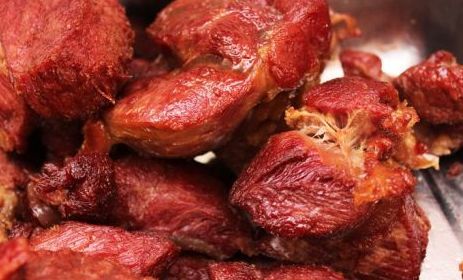 曹县烧牛肉历史悠久,选料严格,选1-2年龄的鲁西南黄公牛作原料,加各种调料和小盐加以腌透,细火烧熟后凉干,再用小磨香油烹、炸,从而具有色、香、味、美、肉质鲜嫩、香味浓郁、熟而不散的优点。