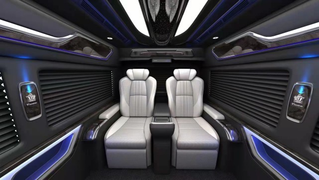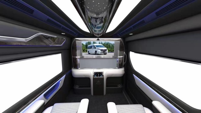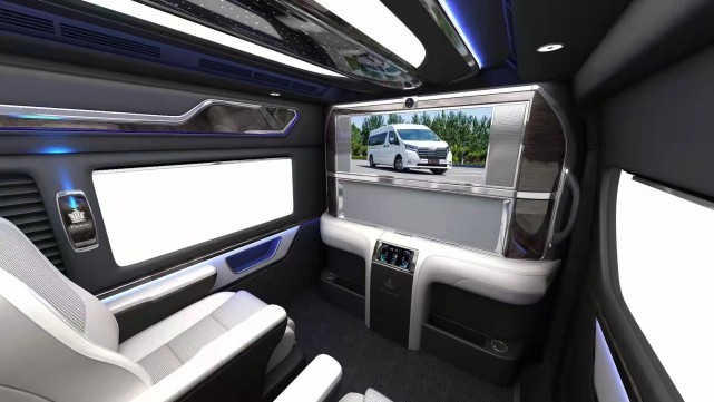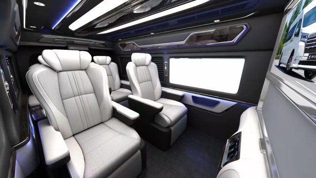 2021款丰田海狮9座商务车采用2+2+2+3四排九座的设计,第二排和第三排均配备了两个Ottoman航空座椅,比埃尔法要两张,第三排放一张三人座的沙发床,既宽敞又实用,这样的情况下后备箱还能垂直放下四套高尔夫球装备!除了空间优势外,豪华性方面真皮、木质以及烤漆饰板的加入使得新车的内饰更具豪华度,车顶的设计时尚、大气,装彩色航空顶灯,星空顶,流水灯充满着奢靡的味道,点亮后车内的氛围是其他商务车所不能比拟的,也是的丰田海狮在内饰的环境上展现出与众不同的色彩,家庭出游必备首选。