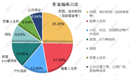 表明性侵发生场所的有301起,其中 发生在校园、培训机构(包括宿舍等)的有76起,占比25.25% 。