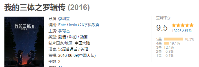 之后,又有了9.5分的第二季《我的三体之罗辑传》,第三季《我的三体之章北海传》豆瓣评分更是达到了9.6的超高分,不少人表示满意,而且已经是“三体宇宙”官方授权的作品。