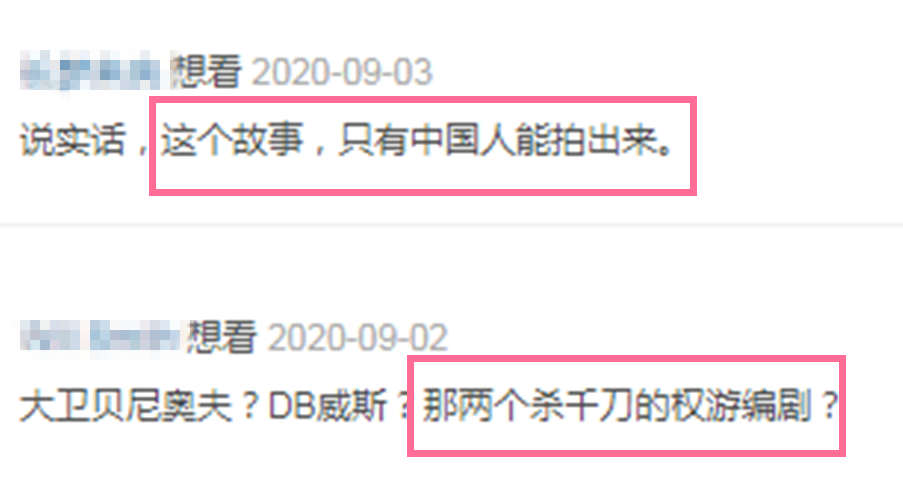 不过,由于这个版本的选角太西方化,再加上《权力的游戏》两位编剧之前对原著的大刀阔斧改编和剧集“烂尾”,也造成了很多中国影迷对他俩的一定抵触,认为“这个故事,只有中国人能拍出来”。
