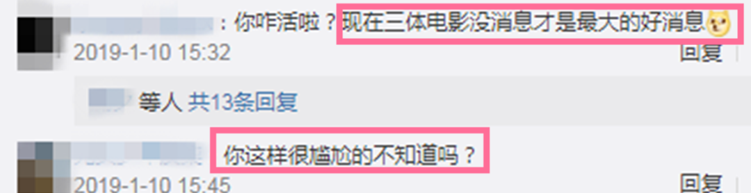 “现在三体电影没消息才是最大的好消息。”