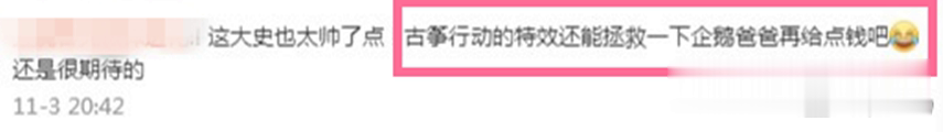 不过,对于预告片中呈现的“古筝行动”的特效,不少观众还是忍不住吐槽,认为“这部分没有用心”,希望再做一下,拯救一下。