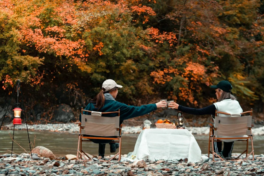山下的情人谷内有五百亩落叶松,可以走在木质吊桥上踩着松软的落叶,最适合年轻人打卡拍照,谷内还可以露营野餐。此处配有停车场和卫生间,适合自驾游客在这儿停留休息。