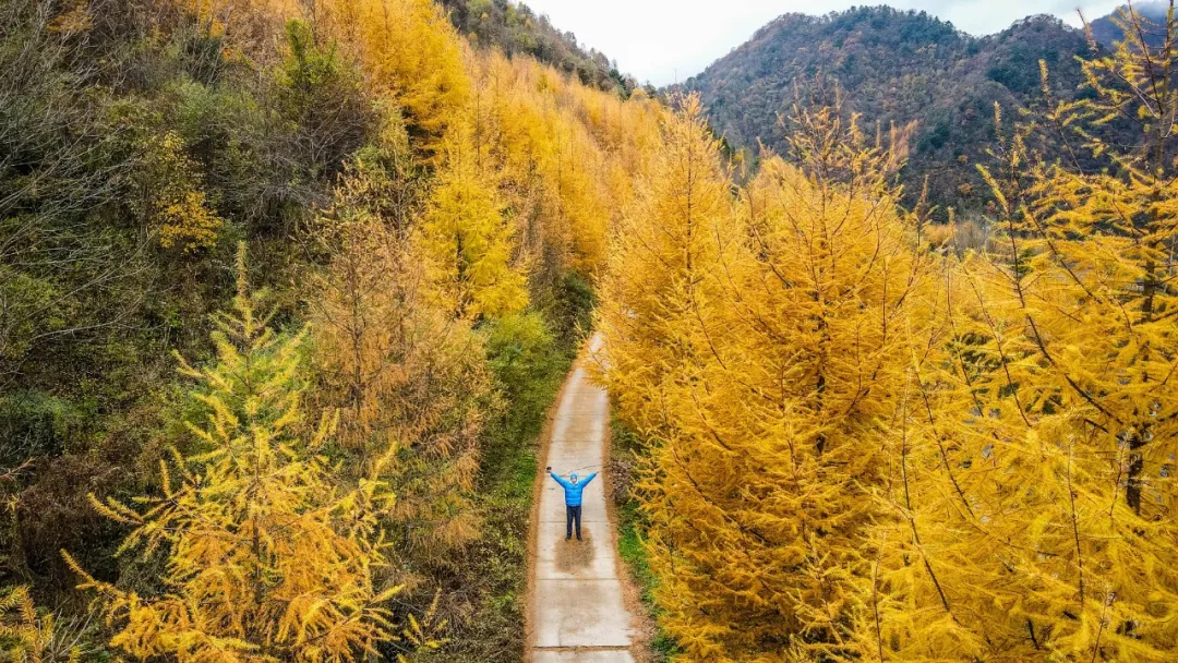 最美乡村公路-高江路,全长39公里,一端接宝鸡凤县高桥铺,一端连留坝江西营村,是留坝秋天最亮眼的名片。水杉林的落叶与阳光一同起舞,让前来自驾的人们忍不住停车合影。顺路还可游览石门景观、银杏观赏园等景点。
