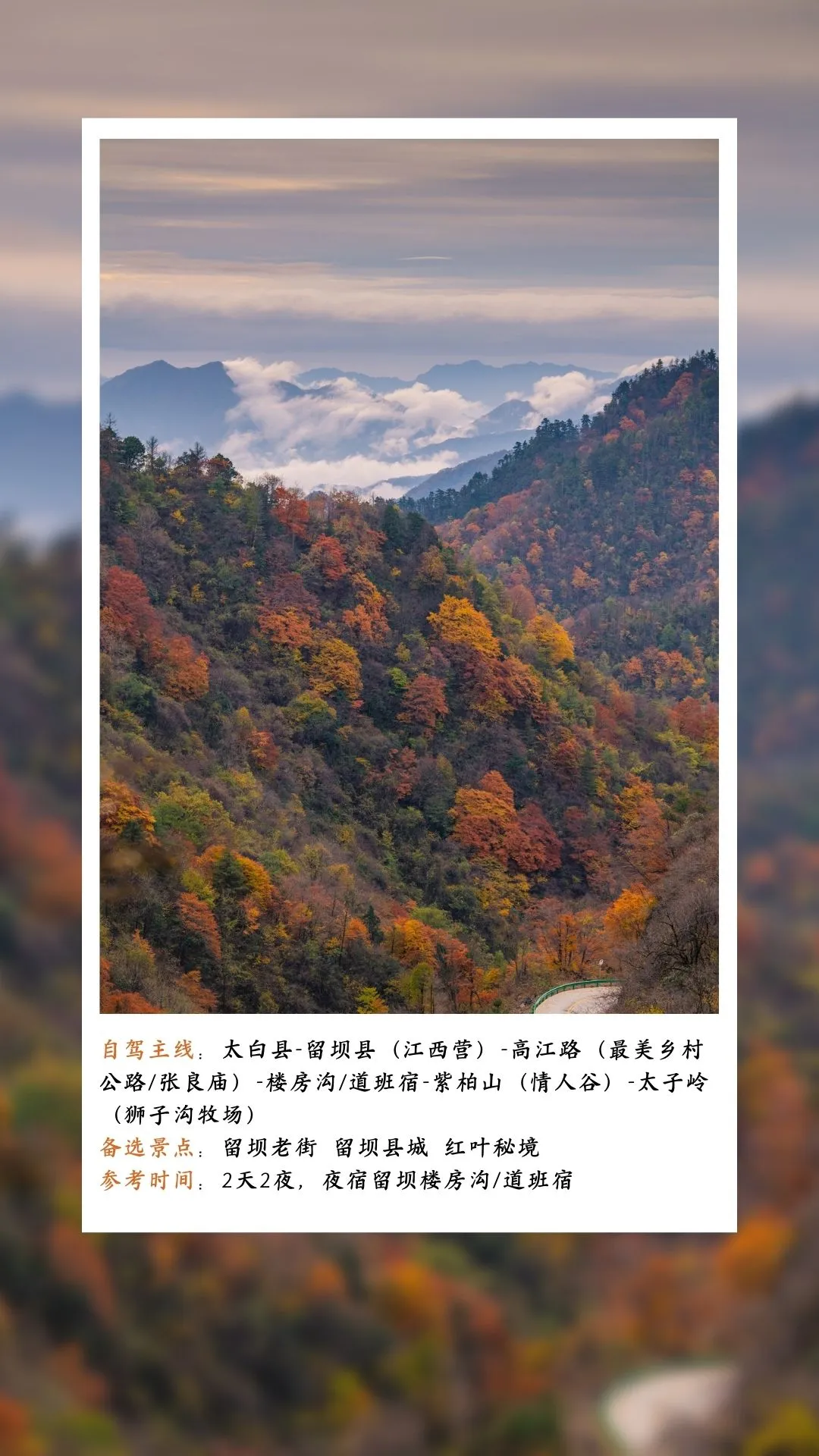 留坝环线中悠游,有如一场流动的盛宴,味道巴适惬意,红叶全景画里也尽是惊喜;