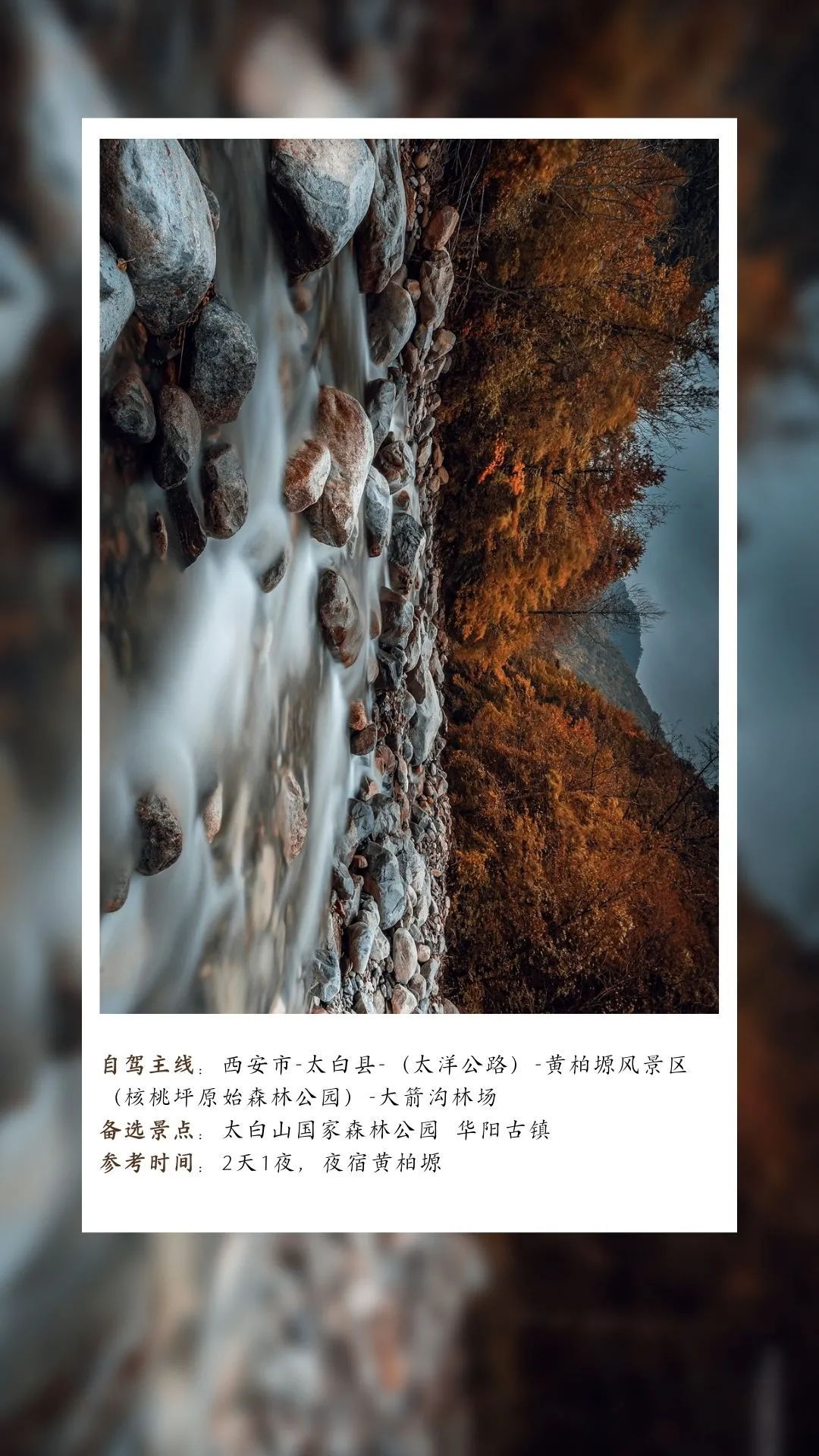 秦岭腹地的秋景神秘又醉人,而深秋的黄柏塬是自驾游爱好者心中的一个梦。深入核桃坪原始森林公园,感受太白山河林木的美丽。