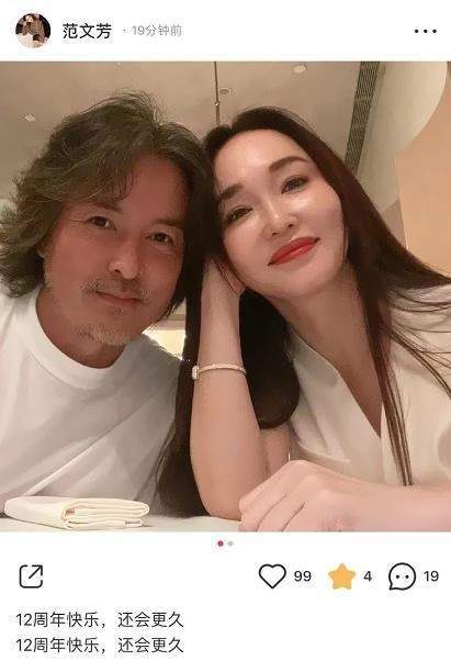 而每年9月30日是他们的结婚纪念日,今年与往年一样,范文芳也在多个社交平台晒出了自己与丈夫的合照,并隔空喊话丈夫“12周年快乐,还会更久”——这真的是神仙眷侣了。