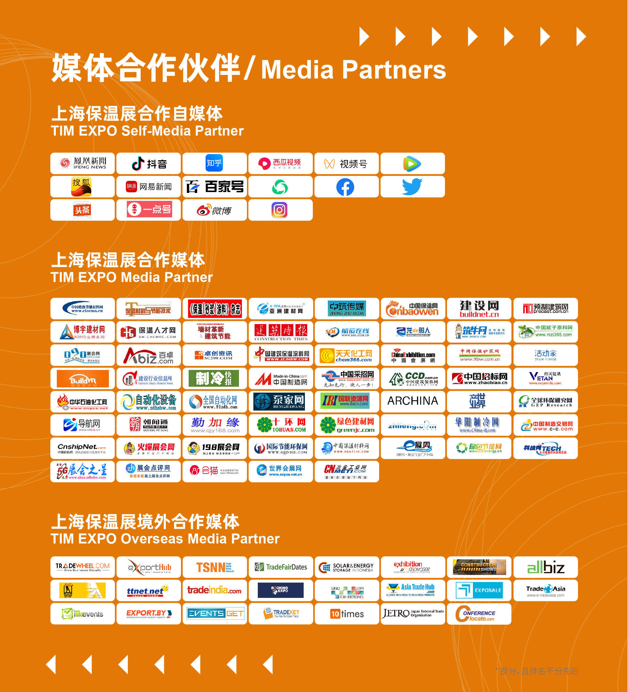 上海保温展与中国保温网、中国建筑保温涂料网、《建筑节能保温》杂志、博宇传媒《保温商情》、建设行业信息网、中国建设材料设备网、中国制造网、绿色建材网、制冷大市场、绿建之窗、《保温精选》、活动家、中国采招网、建筑英才网、TradeAsia Service、Asiatradehub、TradeWheel等数百家行业相关媒体进行了深度合作、周期性报道展会信息。