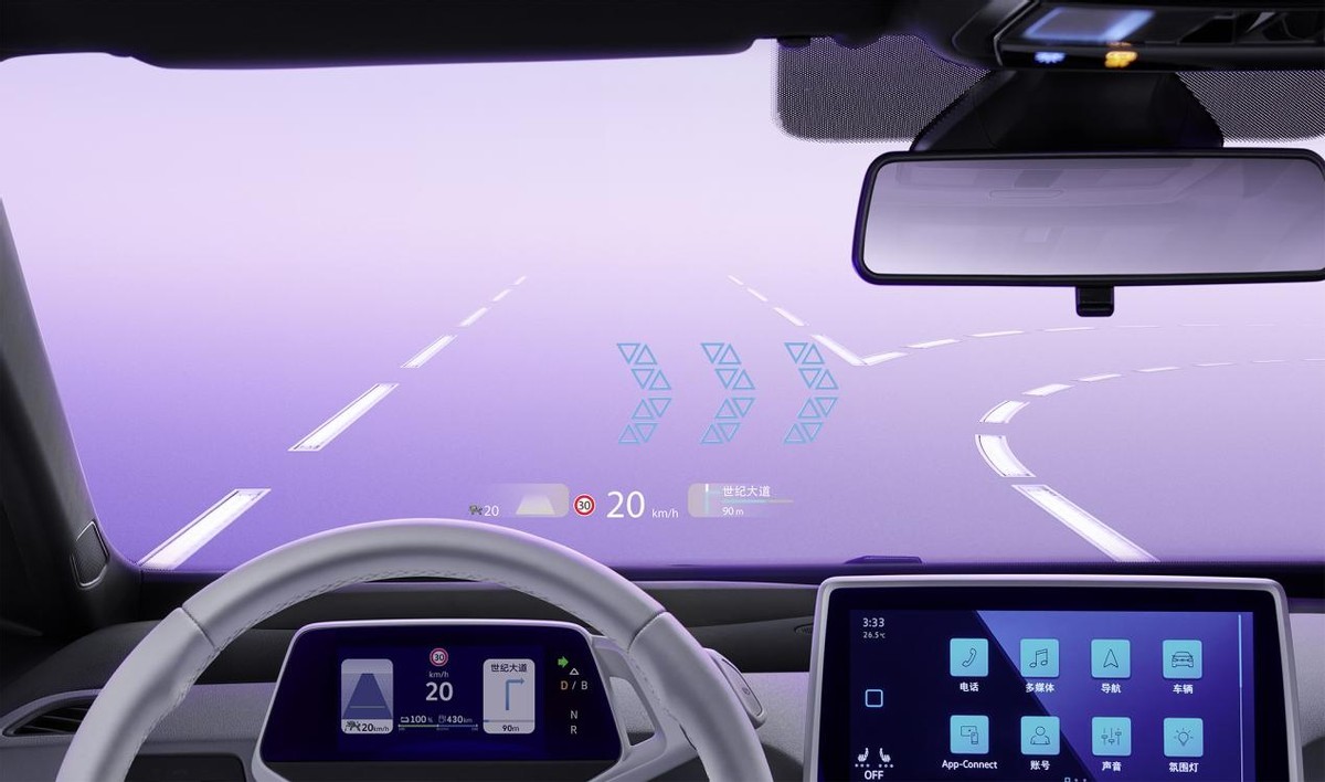 在陌生的道路上行驶的时候总是会担心因为对道路情况不熟悉而走错路,但是开ID3的时候小编就不会如此。导航信息和与车辆有关的信息都会在前挡风玻璃上投射出来,就像在道路上印画出来一样,连头都不用低就可以看到相关内容,不仅方便而且安全,再也不用因为紧张兮兮的看空中的标识指引而忽略车子四周的情况了。