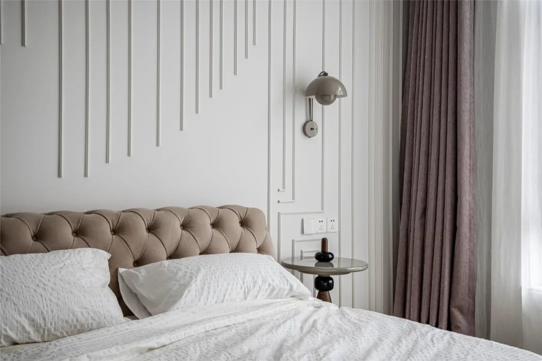 ▲粉紫色的素雅窗帘,搭配在干净优雅的软装空间布置下,整个空间也是显得格外的现代华丽而情趣。
