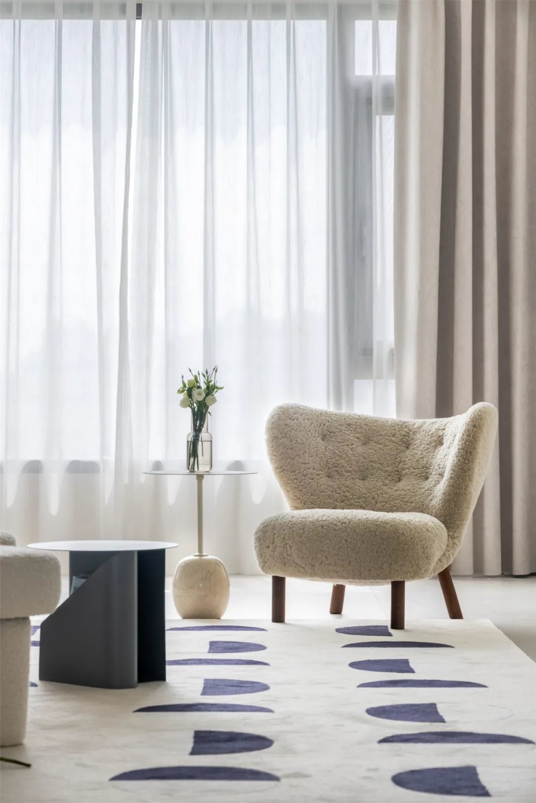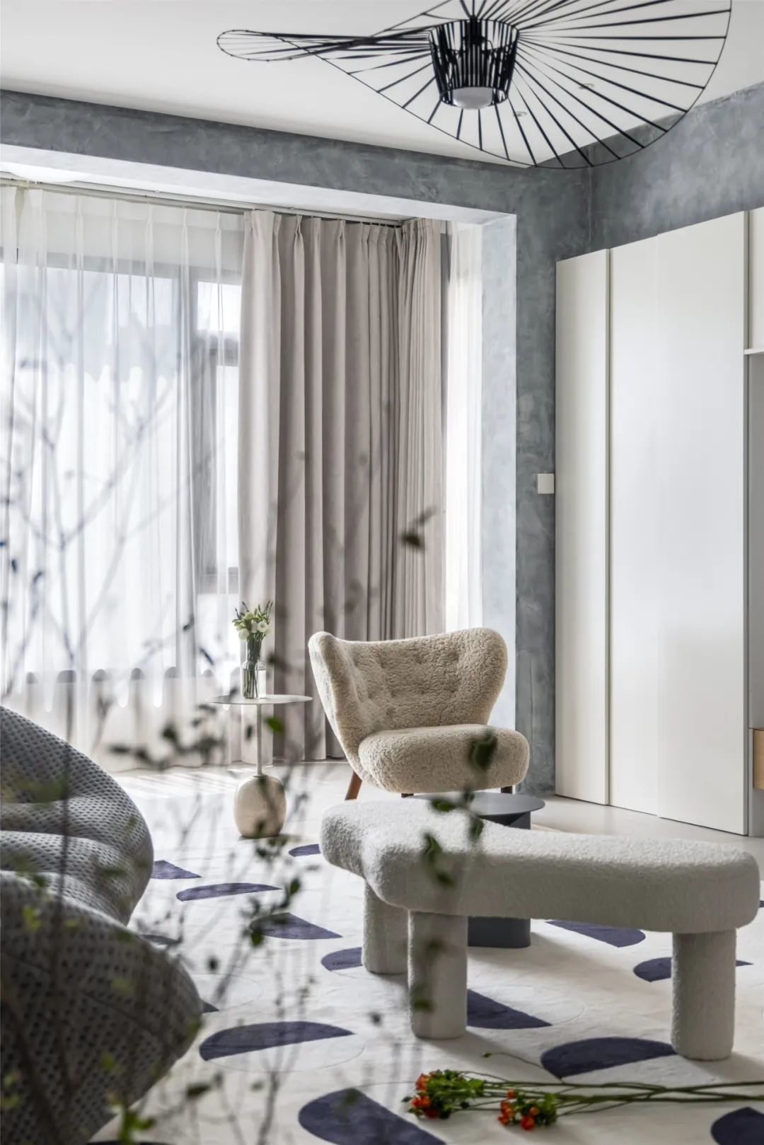 ▲在自然舒适的采光基础,布置休闲椅与创意凳子,结合纱帘的装饰,整个空间都显得格外的从容轻松。