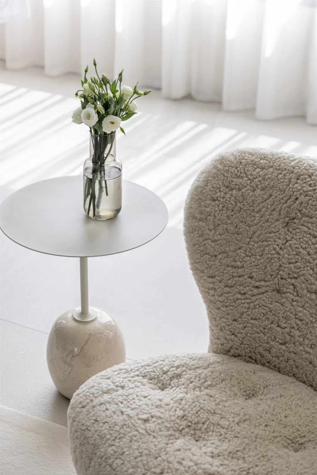 ▲休闲椅与小茶几上,布置鲜花花瓶的装饰,也为室内空间带来了一种自然清新的生机感。