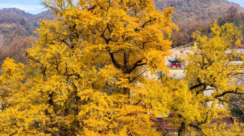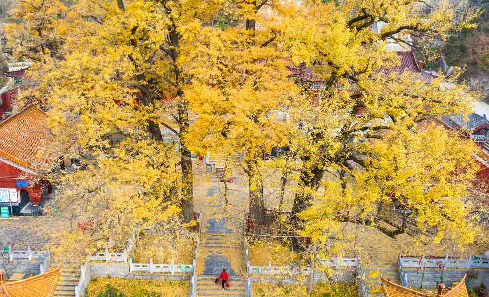 银杏染秋色,遍地黄金叶。每年金秋时节,记忆最深的是千年古刹文殊寺那一抹璀璨的金黄。