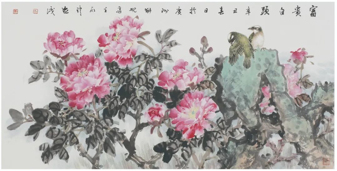 2008 年,《绿荫溪影闲》入选全国画展。同年《牡丹图》在钓鱼台国宾馆展出,《雪域春韵》入选中国美协主办高研班毕业展获优秀奖。