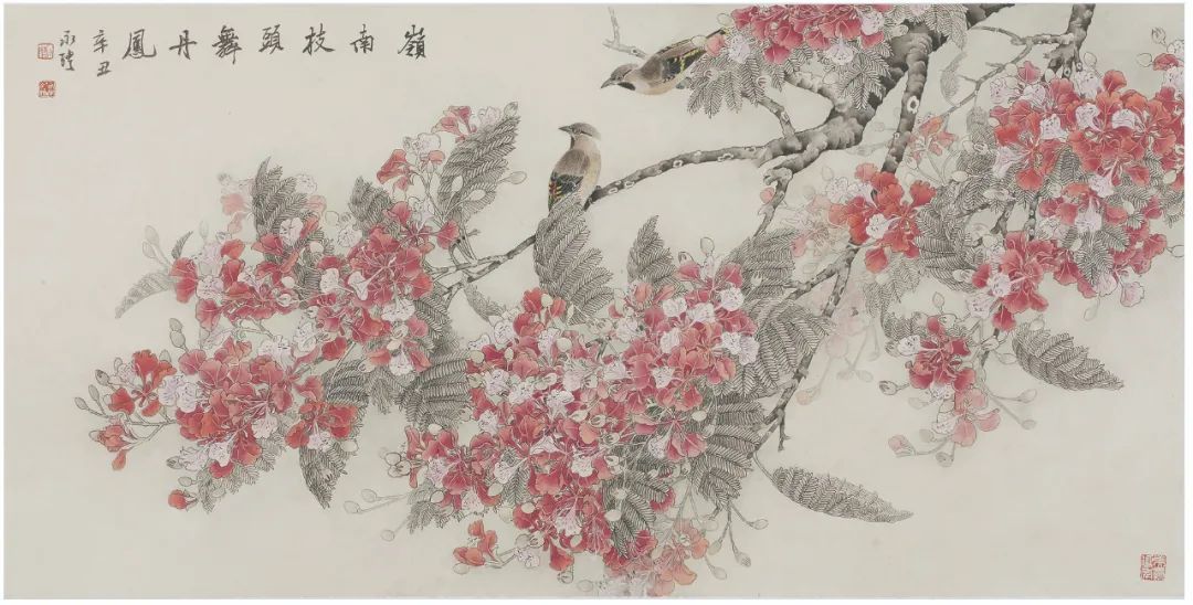 2007 年,《岭南春色》入选全国中国画作品展,同年该作品入选第三届相约香江中国花鸟画展获银奖。