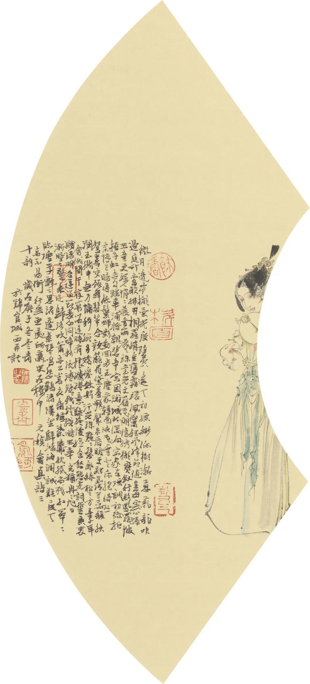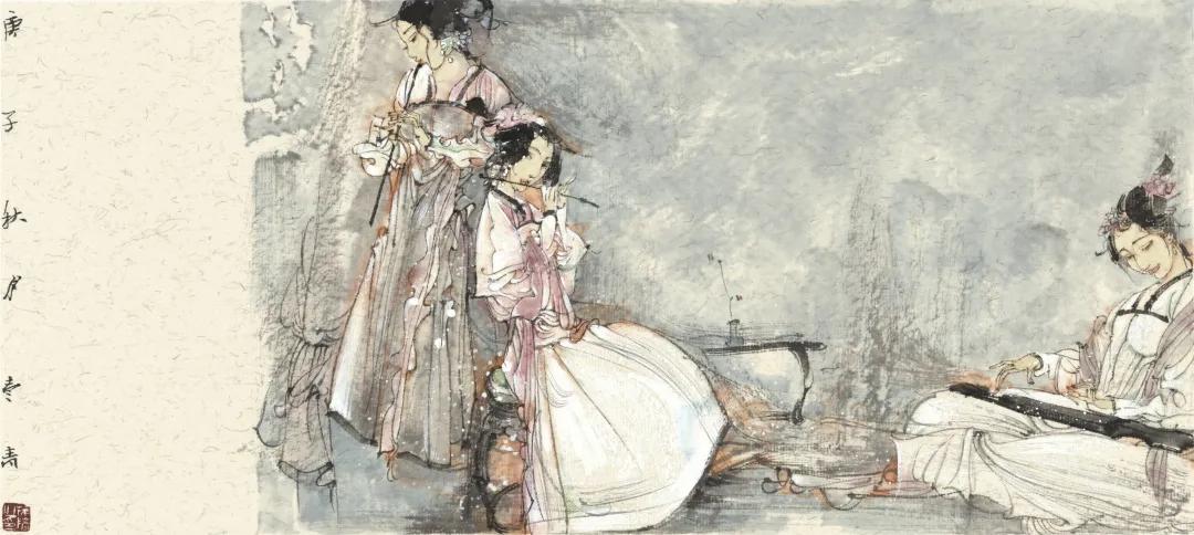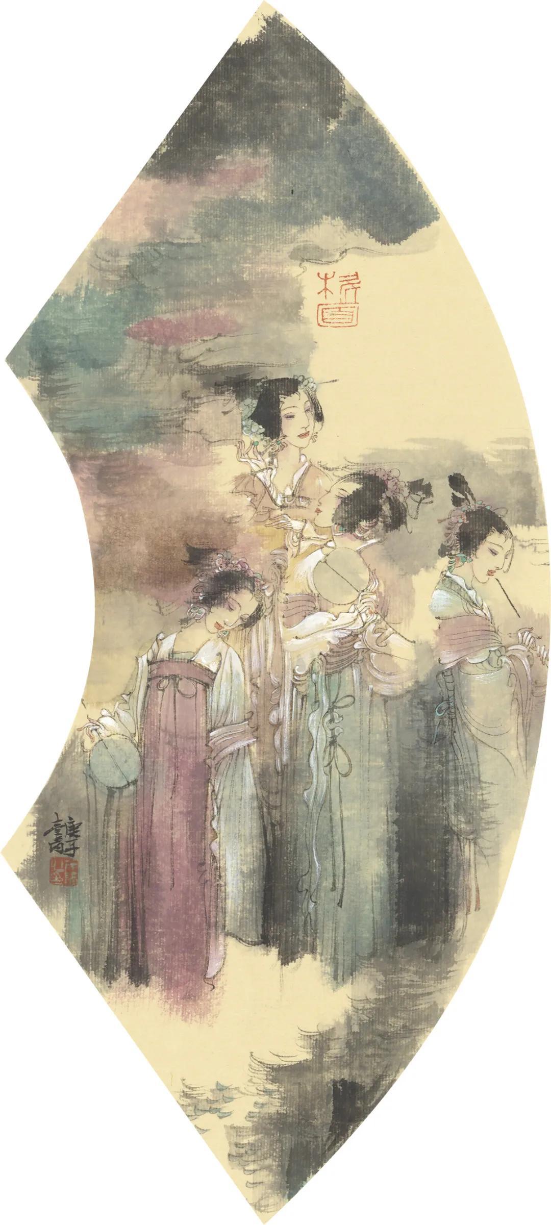 “绿肥红瘦有新词,画扇文窗遣兴时,象管鼠须书草帖,就中几字胜羲之。”是后人书李清照的诗句。笔者且取首句,用以形容苏先生笔下的“仕女”或“才女”。