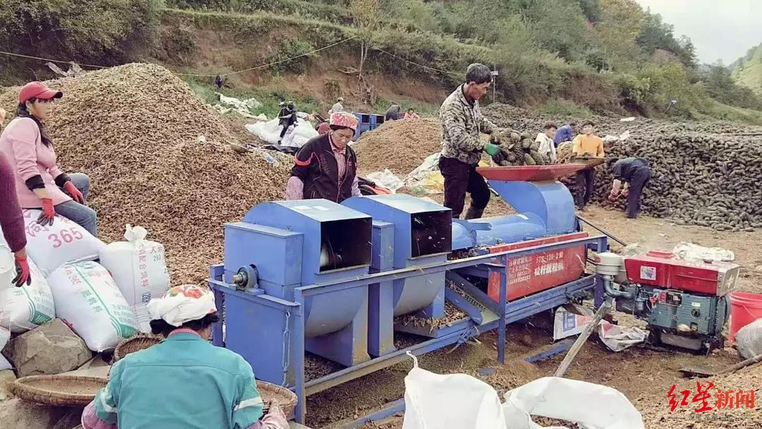 红星新闻记者在这个加工点看到,随着脱粒机不断发出“嗡嗡”声响,一粒粒松子从松塔中脱离出来。