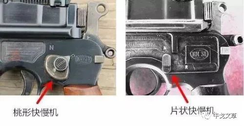 图12 左为毛瑟M712手枪的快慢机,右为MM31手枪的快慢机